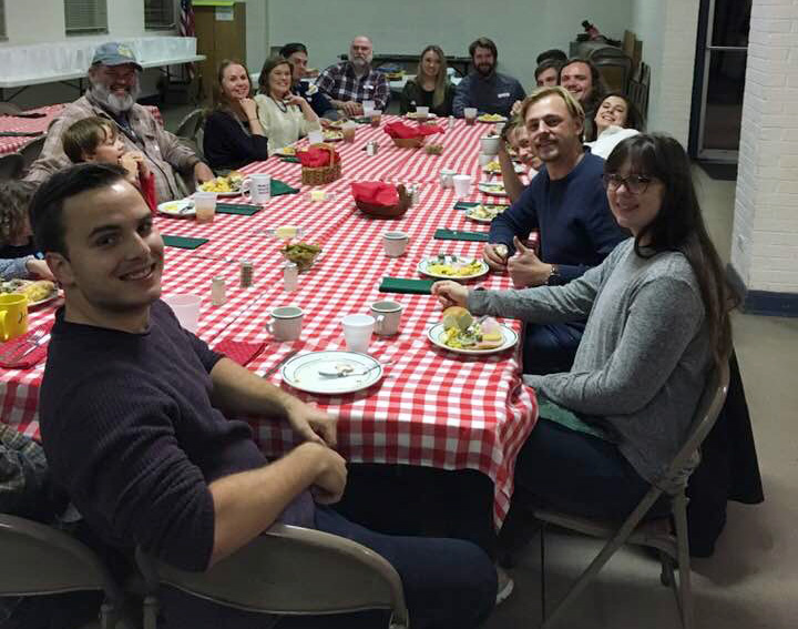 Since last December, my friends and family and I have hosted a monthly gathering at Norwood United Methodist Church that we call “Dinner Party.” We work hardest to reach out to young adults, but everyone is welcome. We started out with about 20 in attendance (see photo at the top of the page). Last Sunday, 70 people came.