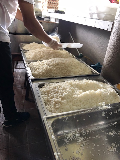 Every meal included rice, beans, fresh fruit and salad, with small protein portions including chicken and fish. Everybody ate the same food, without desserts or seconds. It may have happened, but I didn’t hear anybody complain or say they wanted something else.