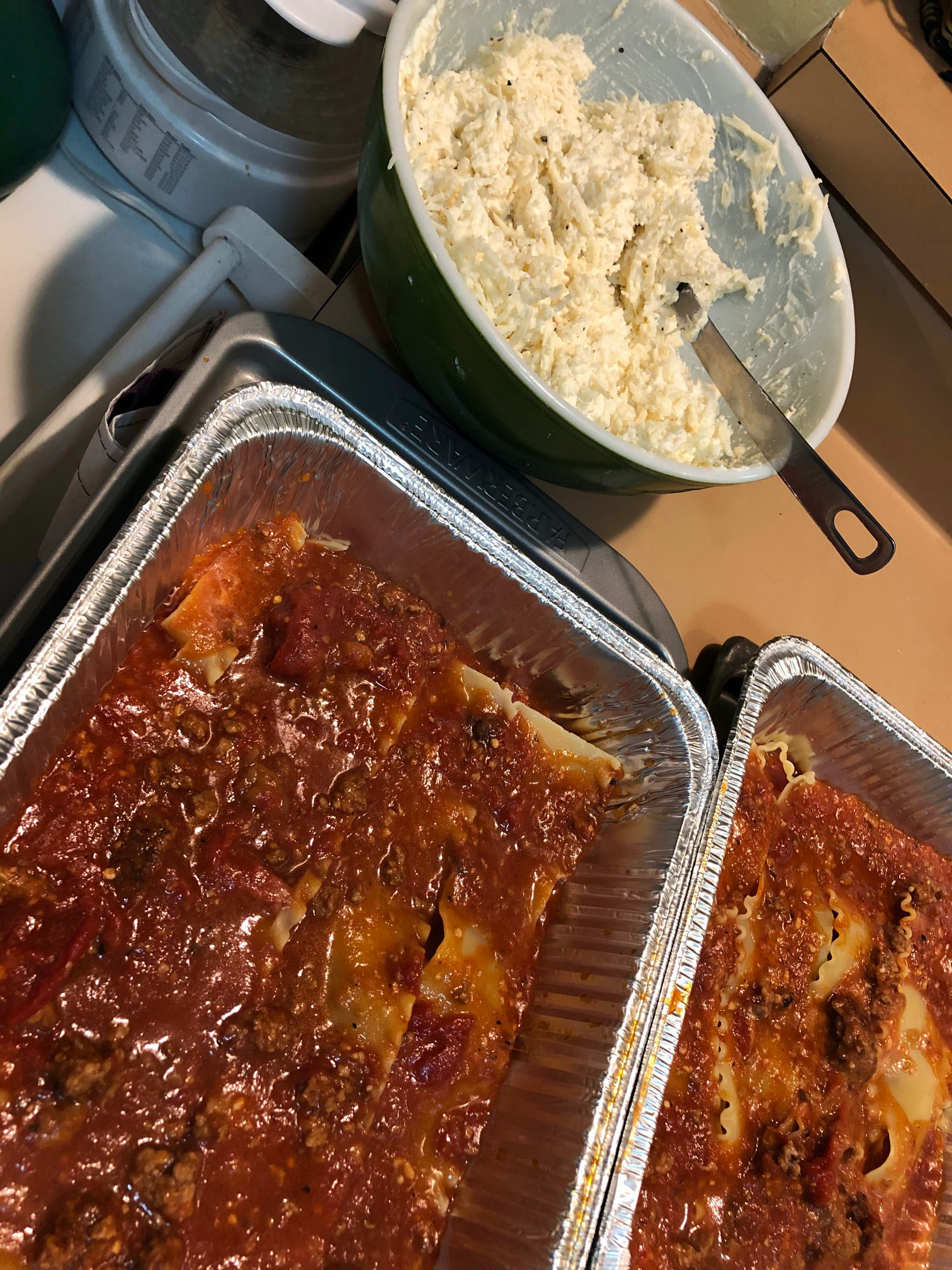 On Friday night, I made two big pans of lasagna. My son said that comfort food was what they needed, and when he thought about comfort food, he thought of lasagna.