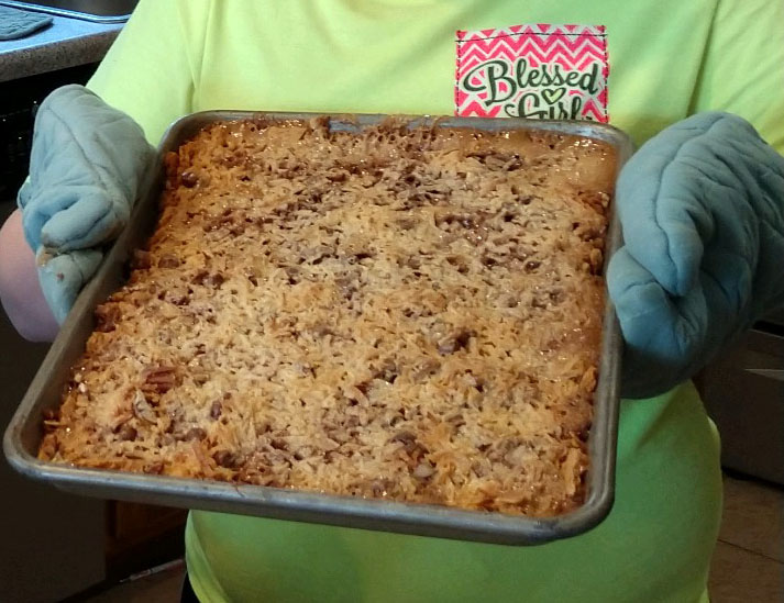 Out of all the goodies they bake, “Magic Bars” is the favorite of youth members and service workers alike, Rebecca says. “They’re kind of a twist on the old Seven-Layer Bars that you used to get off the Eagle Brand labels.”
