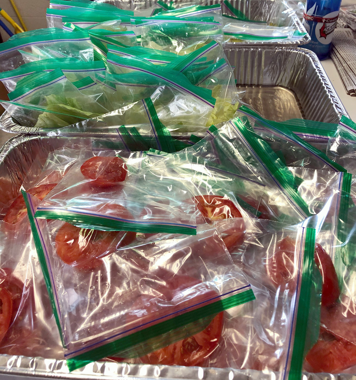 Joe said later it was “chaos.” I’ll vouch for that. Although we managed to get the food out to the cars (and the food was good), communication broke down and the streamlined plan for efficiently packing up dinners fell apart.