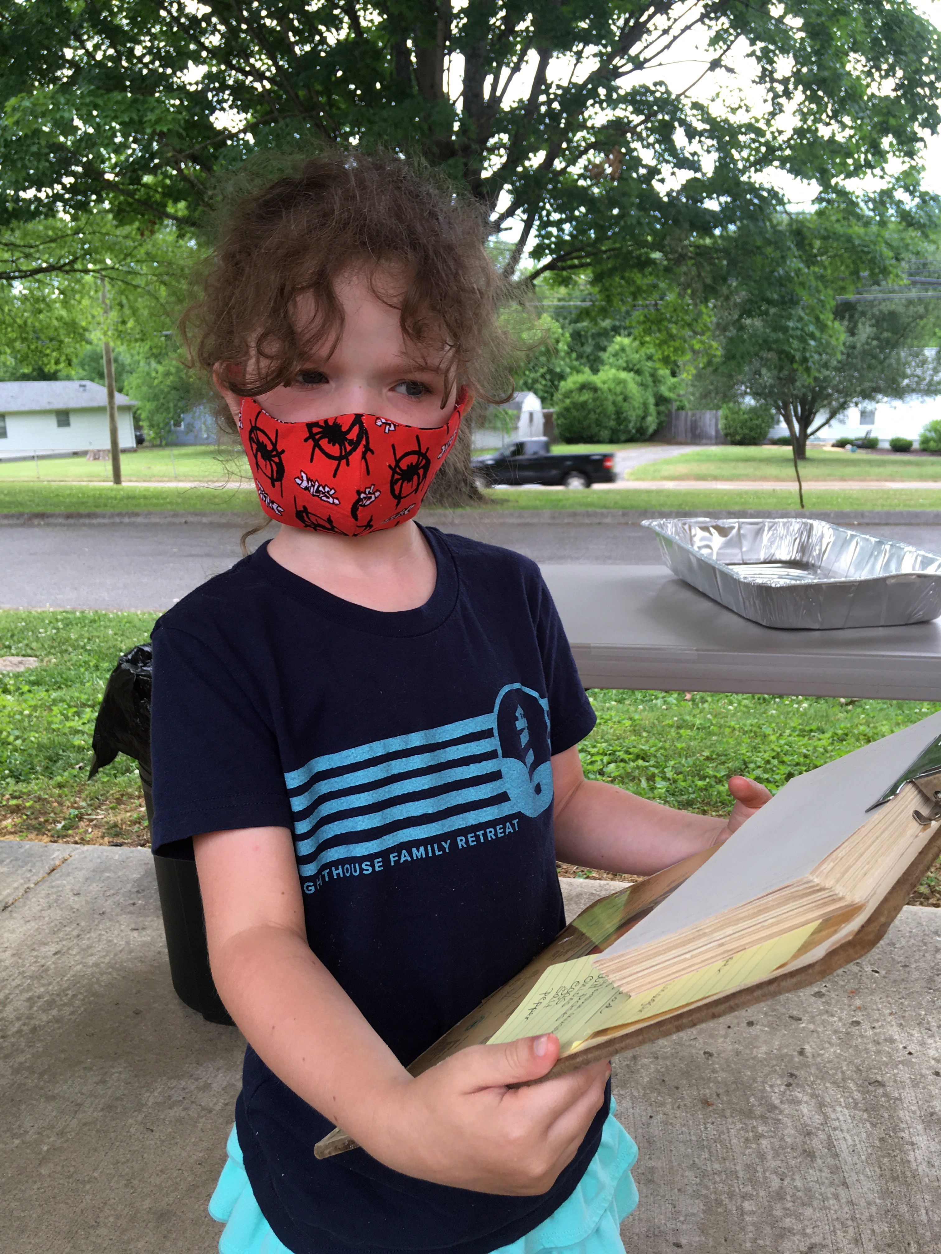 Another difference is our cookout-to-go was planned for a much larger group. Our former dinners attracted between 40 to 70 guests. For the June 14 takeout, we invited an additional 35 families through a school feeding program my husband Mike has been working in. Norwood church members were also invited to pick up a dinner and wave goodbye to Pastor Joe Phillips on his last Sunday before moving to a new church.