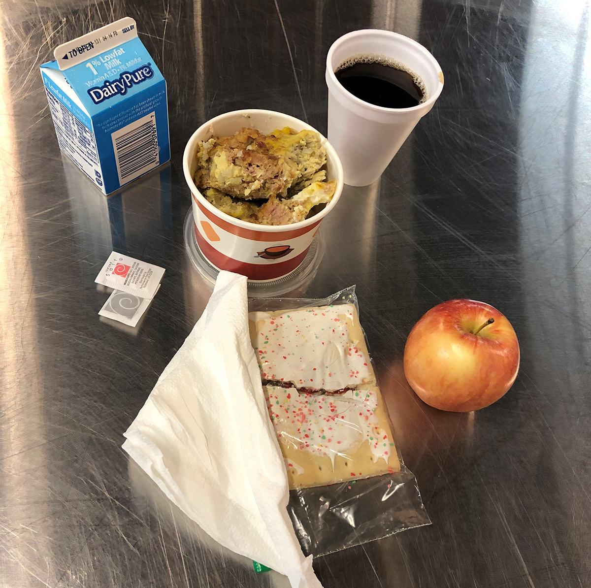 Next week, Rex is considering a “burrito in a cup” using a donation of flour tortillas, salsa, veggies, and meat. Tomorrow’s meal is scheduled to be homemade oatmeal with the fixings and a hard-boiled egg.