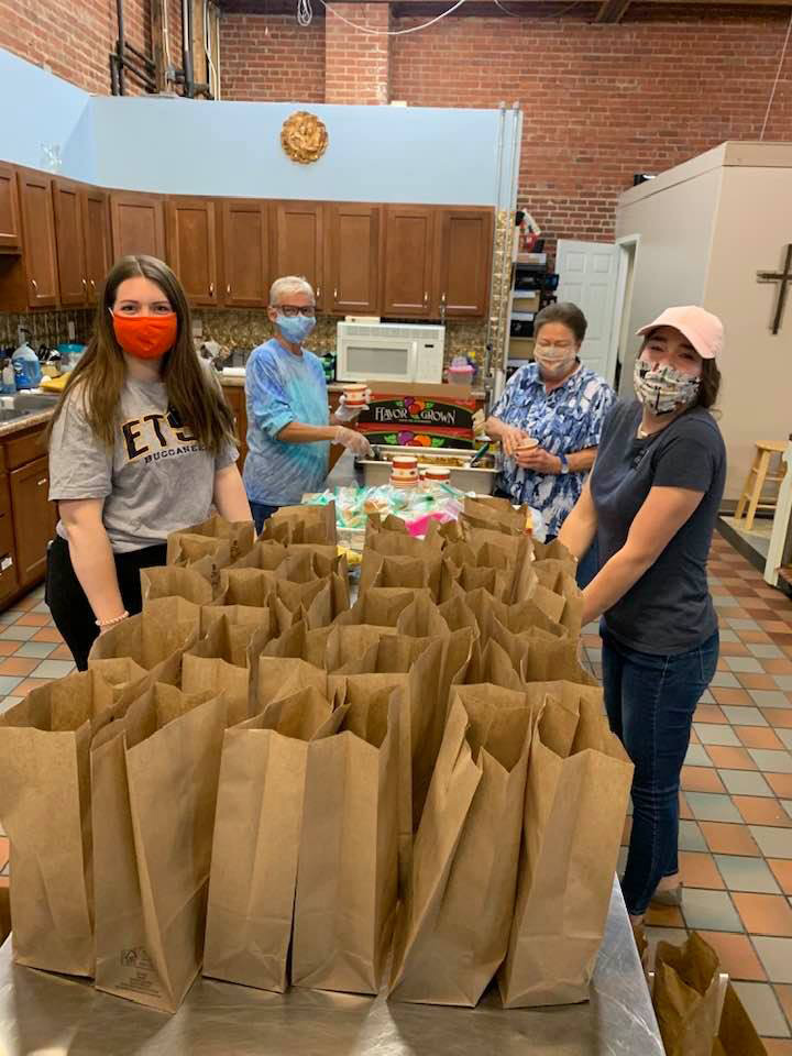 Instead of providing a hot meal from a full serving line inside the building, Shades of Grace immediately went to providing brown-bag meals in an alley behind its downtown building. The safety guidelines enforced by Holston Conference of The United Methodist Church also changed or suspended many of Shades of Grace’s high-contact ministries.