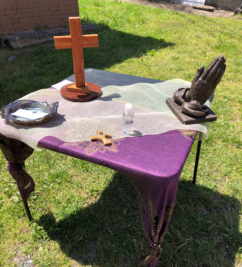 Every Monday through Friday meal (10 a.m. to 11 a.m.) is preceded by a brief devotion and prayer. On Sunday afternoon, the alleyway food pick-up area becomes the site of a short worship service with a simple altar table.
