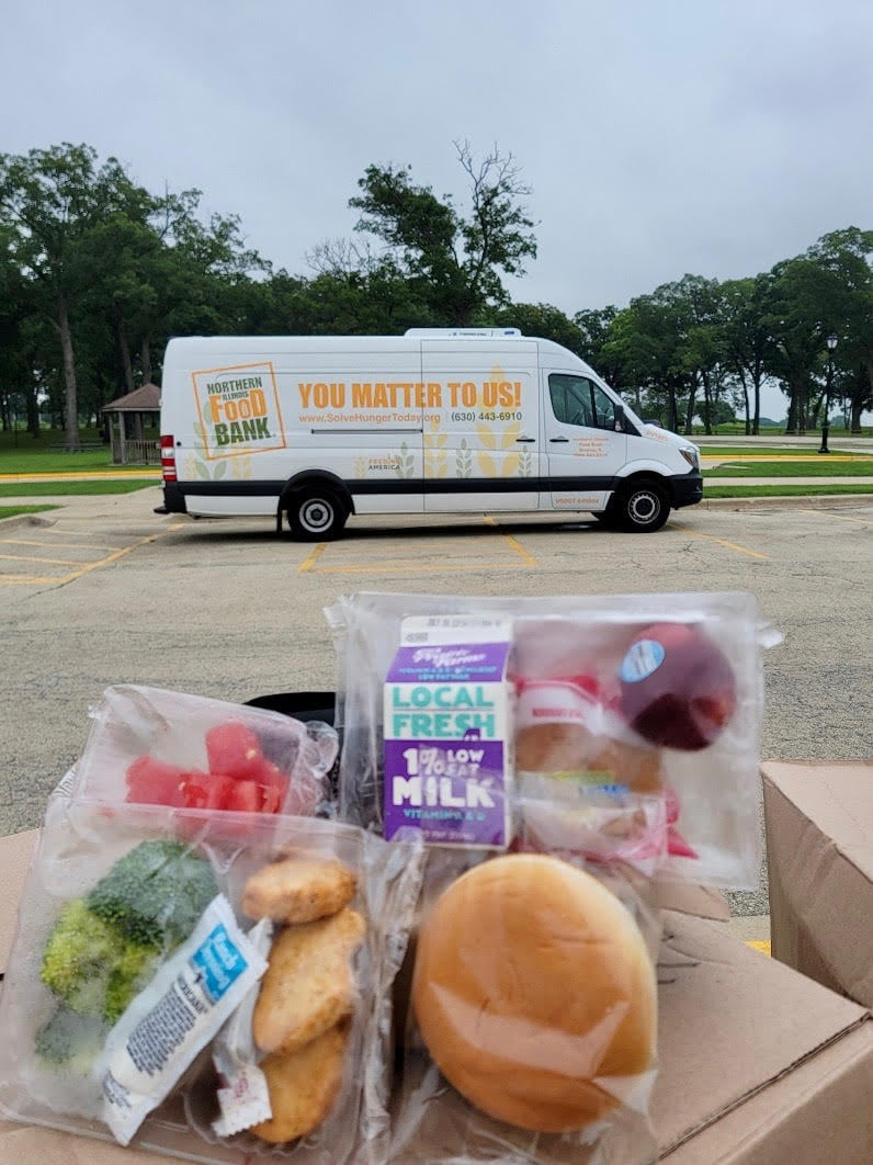 Northern Illinois Food Bank provided multiple meals to about 200 children per day, five days a week from June 1 to Aug. 6, said Jessica. (Today is the last day of this summer’s “Meals on the Move” program, which began in 2017.) Michelle said she hopes to expand her church’s participation in the program next summer.