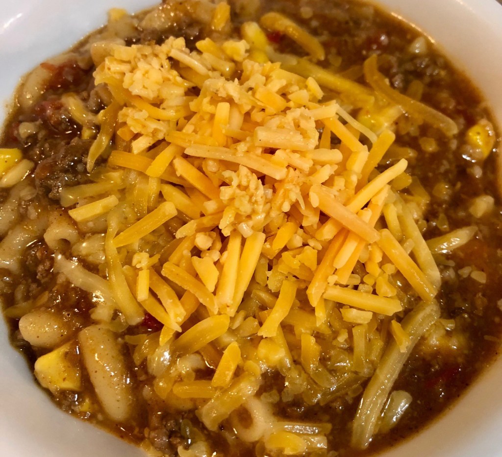 That’s true. When I made taco soup for the 224 who came through Norwood United Methodist Church’s free meal ministry on January 15, I opted for plain canned corn but added chopped fresh green bell pepper for extra color and nutrition. I also made a small batch for vegetarians, substituting canned black beans for the ground beef.